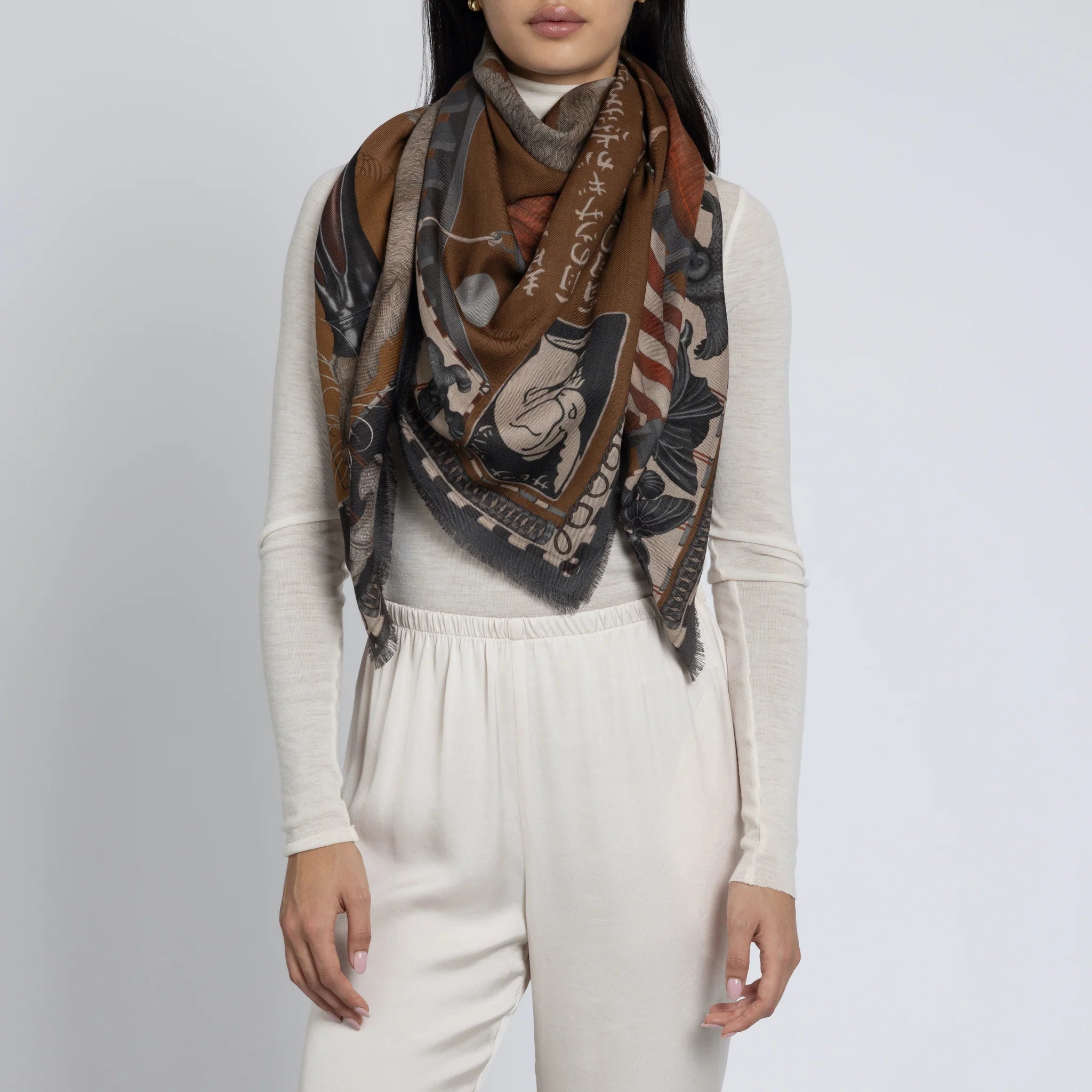 Floating Rabbits Wool & Silk Square - Cinnamon Sienna