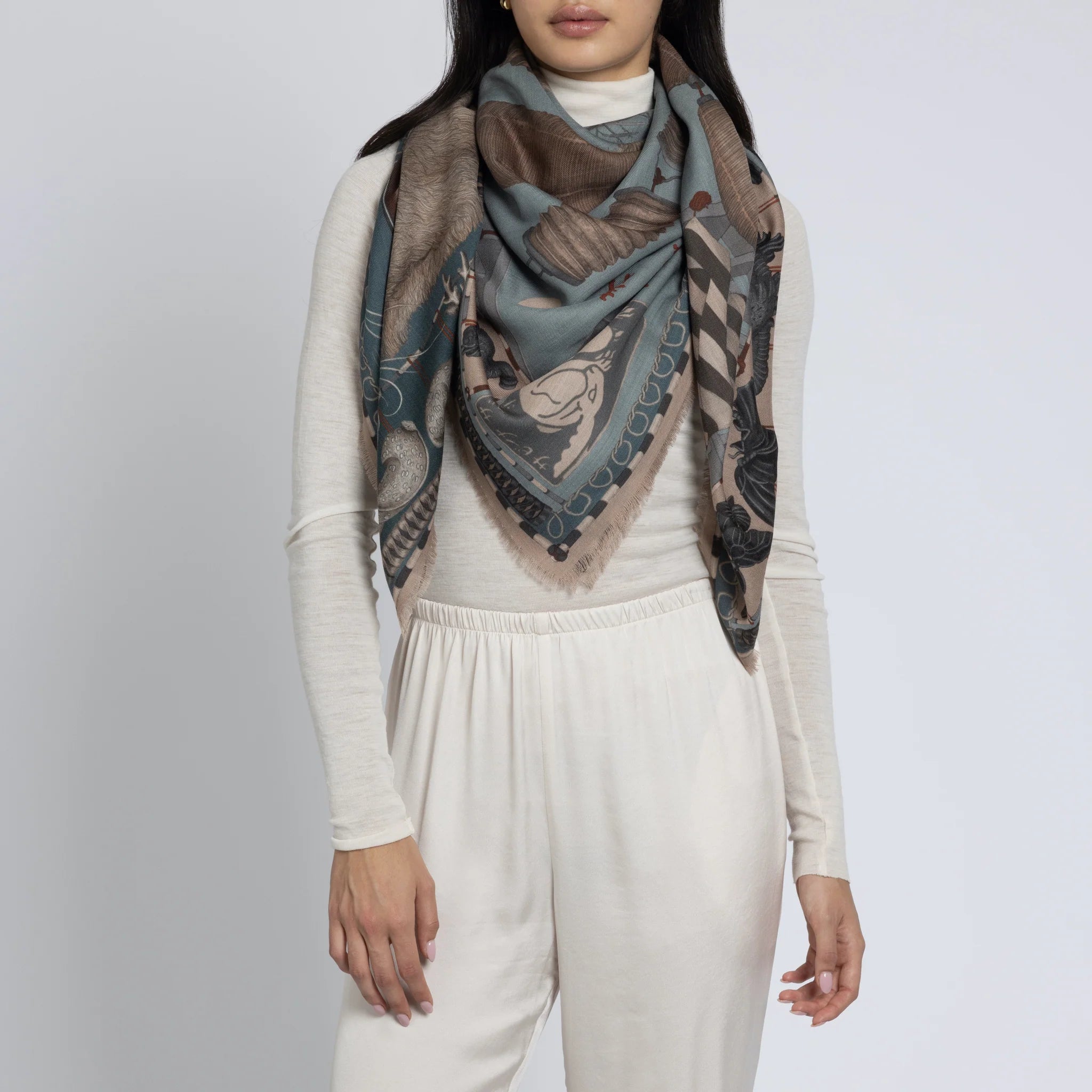 Floating Rabbits Wool & Silk Square - Cameo Rice