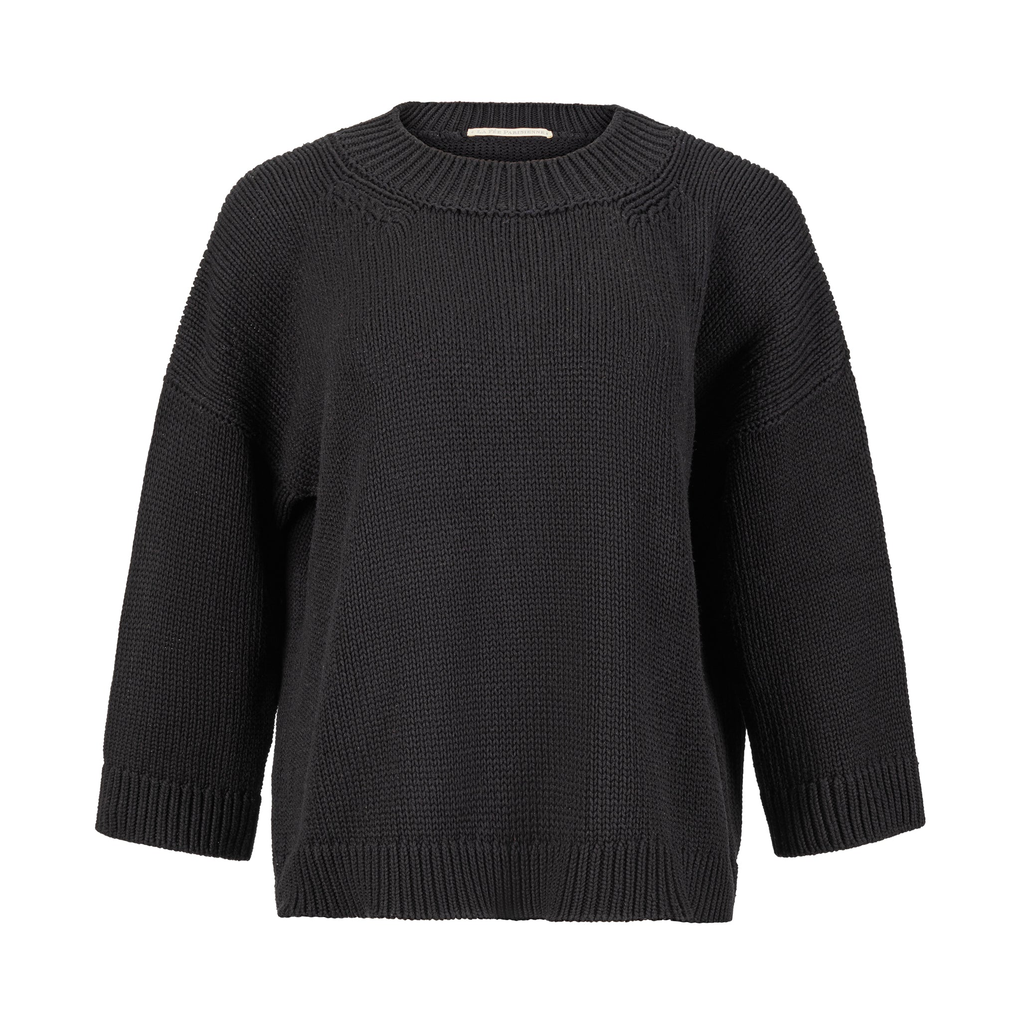 The Cloe Silk Sweater in Noir Black features a chunky knit crafted from 100% silk, offering a unique blend of texture and luxury. Its one-size design ensures a comfortable, flattering fit, perfect for adding a touch of refined warmth to your wardrobe with simple, elegant style.