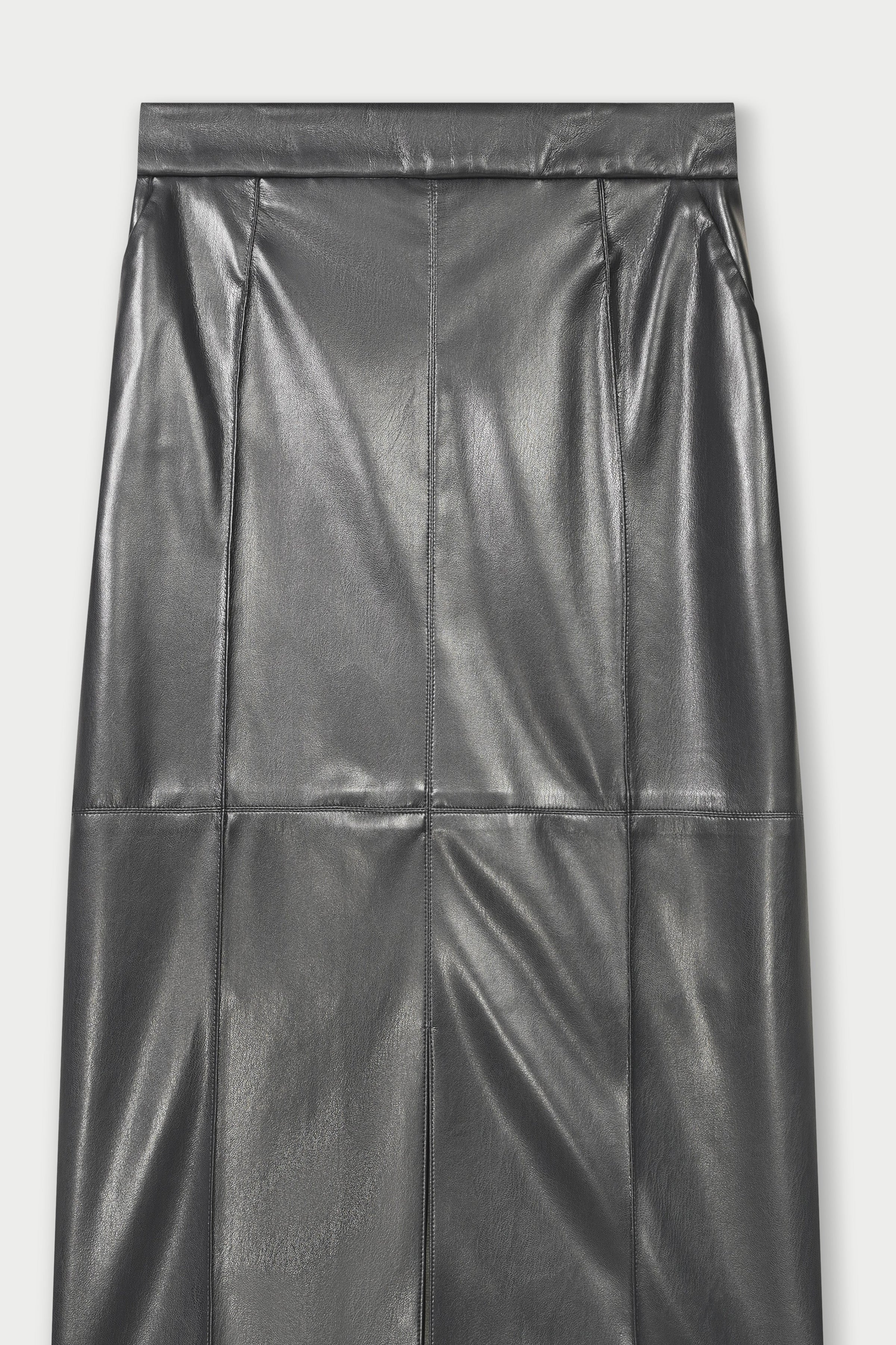 Derien Straight Faux Leather Midi Skirt - Black
