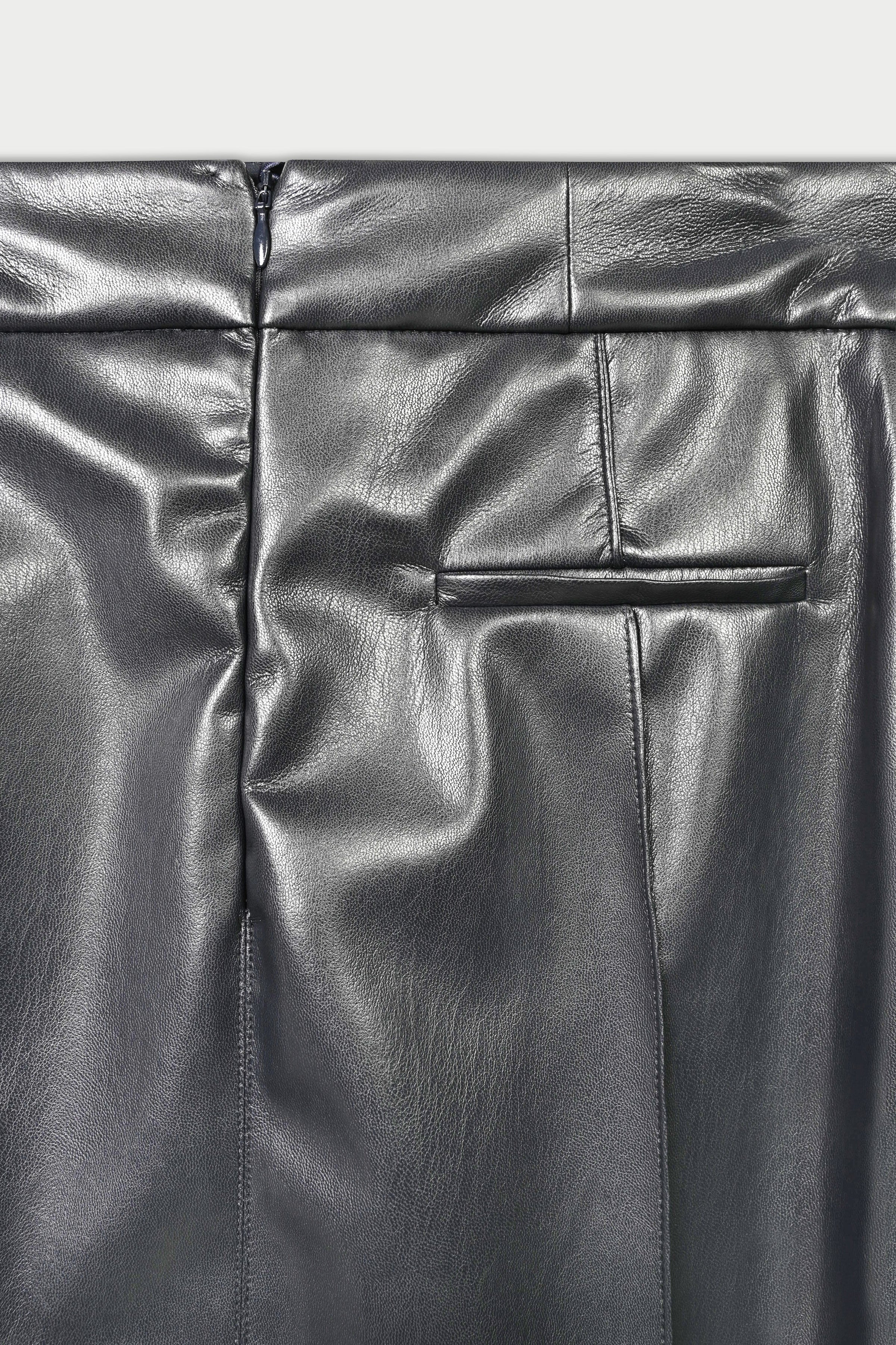 Elevate your wardrobe with the Derien Straight Faux Leather Midi Skirt in Black. Its sleek, straight silhouette offers a flattering fit that effortlessly combines modern style and timeless sophistication. Crafted from smooth faux leather, this midi skirt adds a subtle edge to any outfit while remaining comfortable and versatile for day-to-night wear. Perfect for pairing with both casual and dressy tops, it brings simple elegance to your everyday look.