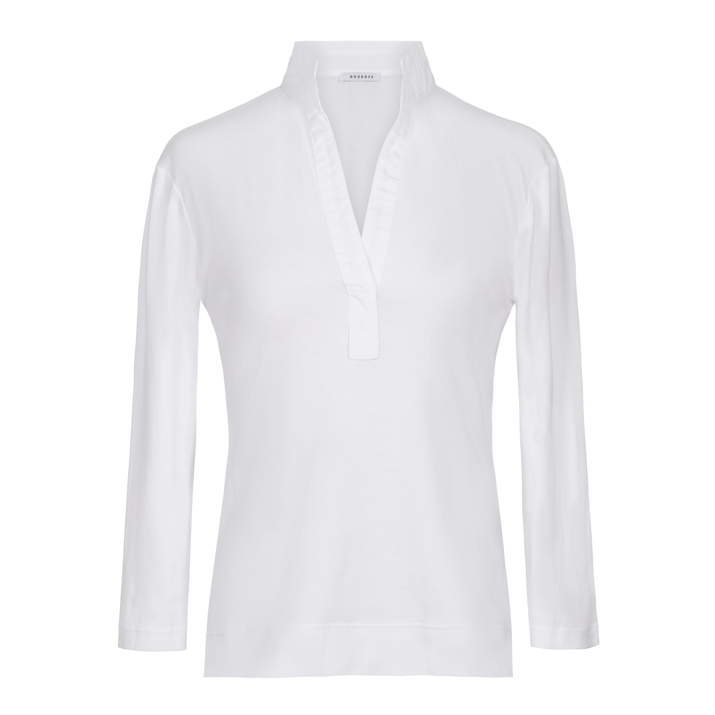 Cotton 3/4 Sleeve Fitted Collared Top - White